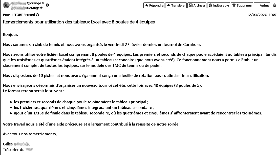Messages de remerciements récents et remarques à l'origine d'évolutions et de diversification de mes fichiers excel